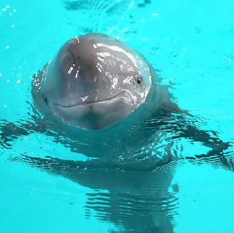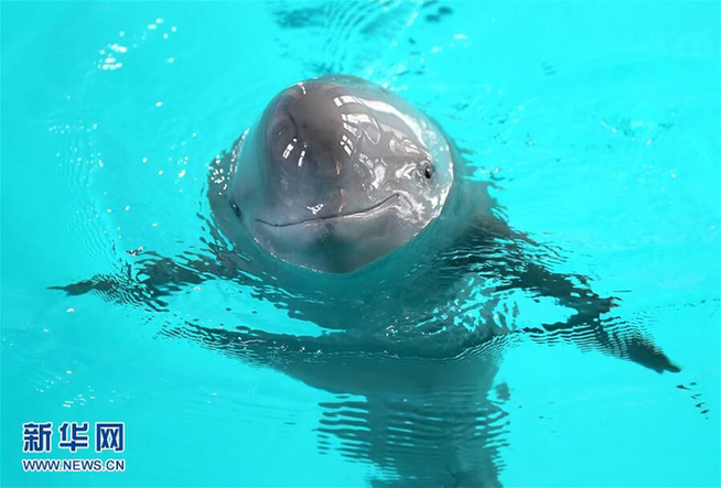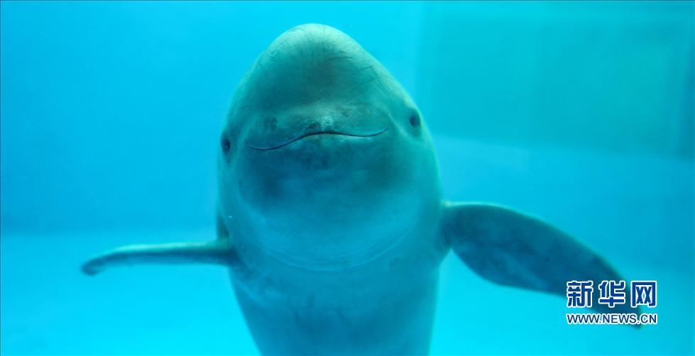 (生活在武汉水生所白鳍豚江豚馆的人工饲养的江豚 来源:新华网)