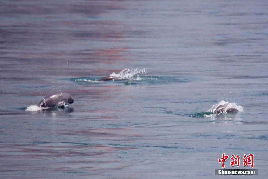 (在长江湖北宜昌段,数头长江江豚在葛洲坝下游水域跃出水面、嬉戏 来源:中新网)