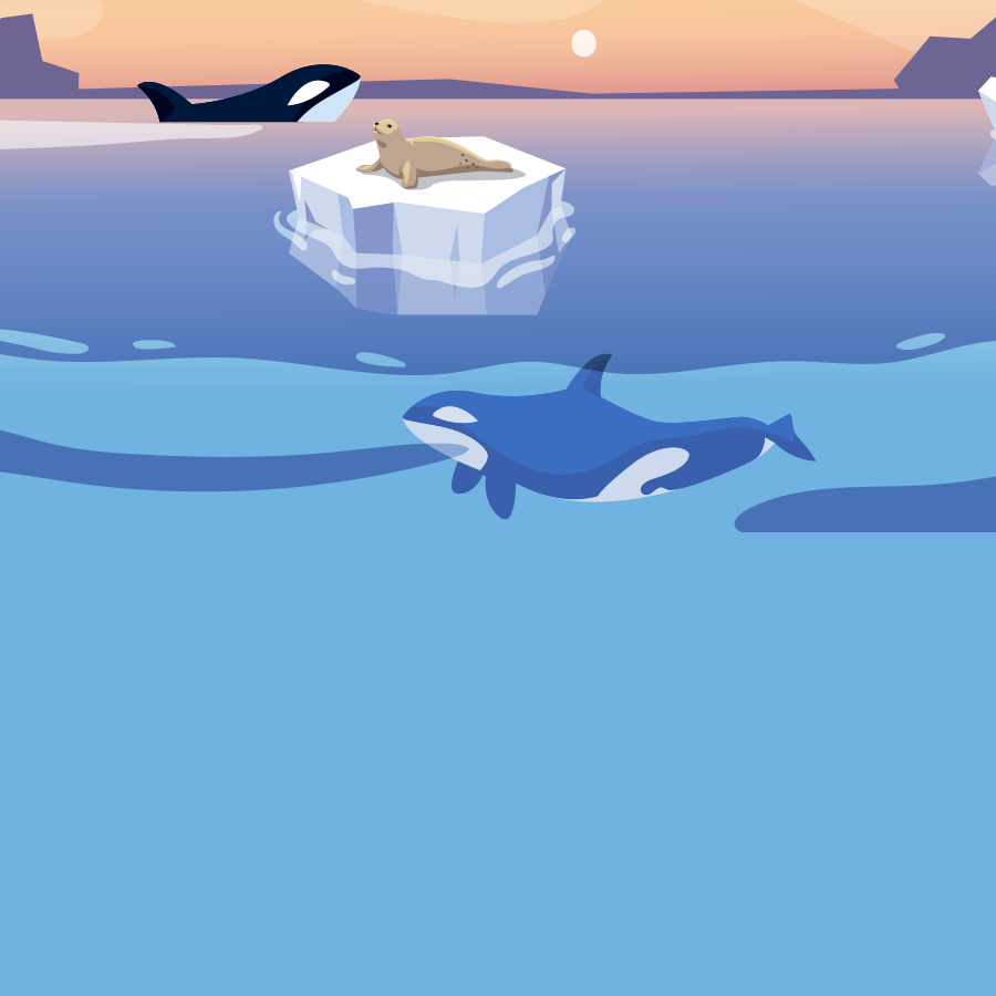 在南极有一群睿智的虎鲸捕食者,它们偏爱海豹这种相对机智的猎物。曾有一队虎鲸在巡视自己的海域时发现了两只在浮冰上休息的海豹,随后,其中两头虎鲸悄悄地探出头观察它们。接着,一阵水浪拍打在浮冰小岛上,浮冰顿时裂成无数小浮冰。海豹才发现数头虎鲸露出了背上优雅的爱心,正在以整齐划一的动作推动海水形成大浪。连续拍下来的大浪冲毁了海豹最后的容身之处,坠入水中的海豹顿时成了虎鲸的盘中餐。
