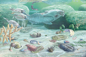 大约5.4亿年前到5.3亿年前的寒武纪地层中一下子出现了各种无脊椎动物化石,这被称为寒武纪大爆发。关于寒武纪大爆发有各种解释,它也成为了古生物学和地质学上的一大悬案。