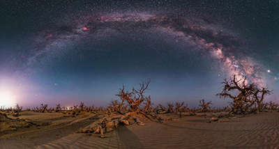 8月4日,内蒙古额济纳旗,银河高悬于黑城怪树林。段新江摄