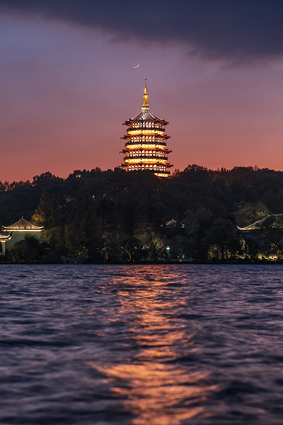 11月28日,浙江杭州西湖,雷峰塔前,月色正好。吴瀚轩摄
