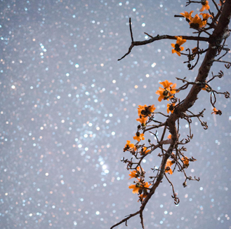 2月9日,四川大凉山,猎户三星高照木棉绽放。翁锐摄