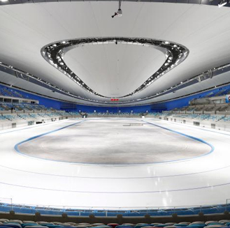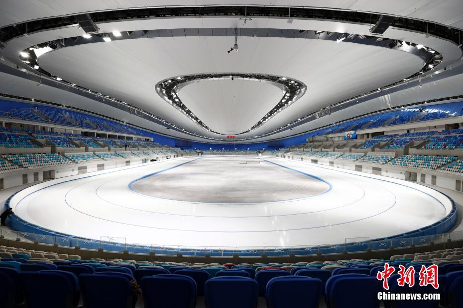 (2021年1月28日,已完成制冰的国家速滑馆。北京2022年冬奥会标志性场馆——国家速滑馆近日完成速滑赛道的首次制冰,具备了迎接测试赛的条件。 来源:中新网)