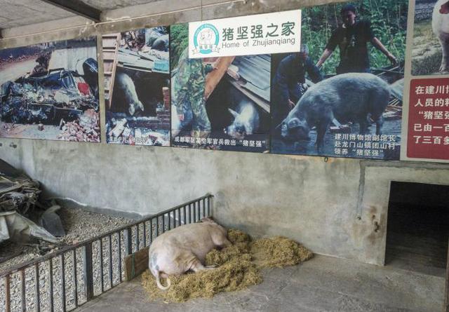 汶川地震博物馆中的“地震明星”猪坚强的展区