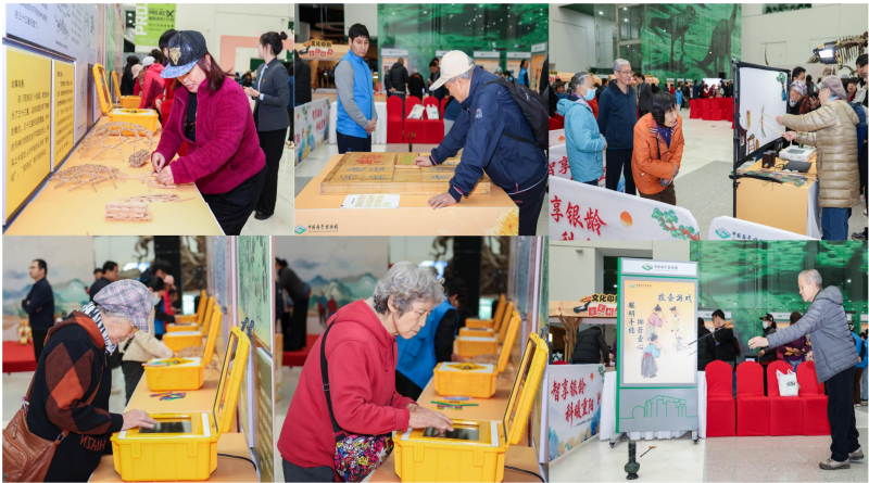 活动的“重头戏”——“银龄益智坊”展台前,人头攒动,来体验的老年朋友络绎不绝。展品“栈道行军”前,几位老年朋友正在专注地操作金属杆,引导圈环沿弯曲金属丝稳步前行。它的灵感源自《三国演义》中的“偷渡阴平”桥段,如今化身手眼协调训练项目,让老年人在重温经典的同时,完成了一次有趣的认知锻炼。展品“武松打虎”是音乐反应游戏,参与者需根据鼓点操纵皮影影偶完成动作,训练节奏感与反应能力。展品“山间花果”让老年朋友在寻找、匹配各类果蔬的过程中,锻炼观察力与短期记忆力。展品“杏帘在望”则源自《红楼梦》,要求参与者根据画面情景和诗歌韵律,完成雕版印刷并拼接诗句原文。“一看到‘武松打虎’‘元春省亲’这些熟悉的故事,就觉得特别亲切,既回味了经典,又活动了脑筋,一点都不觉得是在做训练,很有意思。”正在体验的李大爷感慨道。在“银龄益智坊”的创意设计上,巧妙地将四大名著中的“花果盛宴”“武松打虎”等经典桥段转化为“华容道阻”“山间花果”“杏帘在望”“天外有天”“武松打虎”和“栈道行军”等六件互动展品,帮助老年观众在回顾经典的同时训练手眼协调与逻辑思维,让他们在熟悉的文化记忆与情感连接中实现健脑益智。