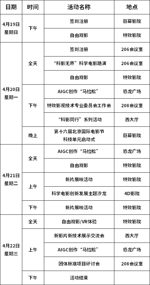 2026年是“十五五”规划开局之年。第十六届北京国际电影节科技单元暨中国科学技术馆特效电影展映将坚持以习近平新时代中国特色社会主义思想为指导,深入贯彻落实党的二十届四中全会精神,围绕“推进电影科学与艺术深度融合、加快发展科学电影文化新质生产力、推动科学电影产业高质量发展”目标,以“爱上科学电影”为主题,设置科影同行、科影无界、未来之翼等板块,旨在通过打造高新科学电影技术交流展示、创新资源汇聚及行业信息共享平台,构建科学电影服务和行业创新发展新高地。现将有关事项通知如下: