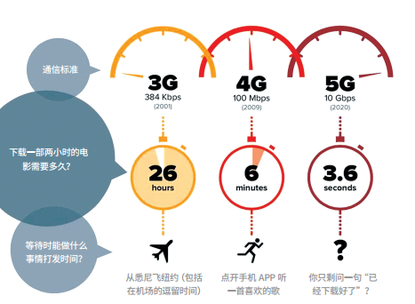 5G网有多快?目前流行的4G网络,下载速度仅为75Mbps,而5G网已经达到1Gbps,未来的速度更是有望达到10Gbps,这意味着一部高清电影的下载时间最快只需要不到1秒。