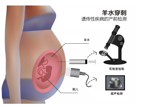 蒋宇林(以下简称“蒋”):目前,羊水穿刺是我国最常用的一种产前诊断技术,全称叫羊膜腔穿刺,简称羊水穿刺、羊穿等。羊水穿刺是在B超的引导下,用细长的针管抽取羊水,对羊水中胎儿脱落的细胞进行检测,以评估胎儿宫内情况以及是否患有疾病。