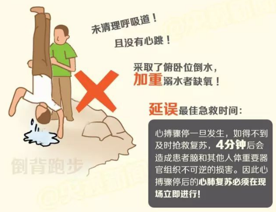 然而实际情况却并非如此,湘雅医院急诊科主任医师李湘民表示,通常情况下,倒挂控水只能控出胃内的水,肺部的水几乎不能控出来。在溺水者意识不清楚的情况下,此种控水方法只会增加胃内容物呛入气道造成窒息的风险。不仅如此,对于溺水心脏骤停的人而言,倒挂控水还会造成心肺复苏延误,增加死亡率。