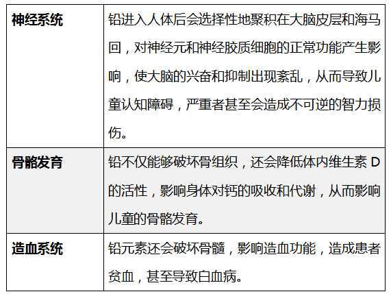 但同时铅也是一种对人体健康危害巨大的重金属,进入人体后容易在骨髓和造血细胞中富集,破坏红细胞,影响脑、肾等器官的功能。而婴幼儿的代谢和排泄功能不完善,进入体内的铅金属有超过30%会蓄积在体内。
