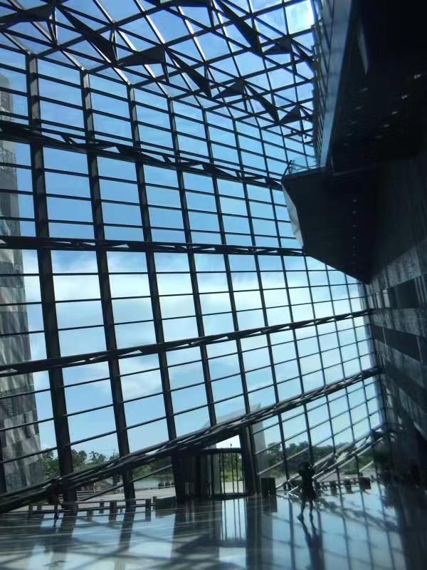 “兰博”内的景象别有洞天,室内27米大跨距的钢桁架系统,构成了宽阔无柱的连续性展示空间(图2),透过大面积采光玻璃,馆外的湿地和光影也成为博物馆展示空间的一部分。当观众走进博物馆,从一楼转身踏上二楼扶梯的一刹那,北方壮阔的龟山岛就会赫然映入眼帘,仿佛与九十年前热闹繁盛的乌石港构建起精神的连接。“兰博”通过其独特的建筑造型设计和内外空间处理,营造出丰富的观感,成为本土文化最直接的表达。