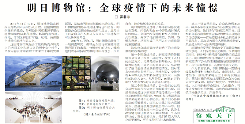 以上是关于调研结果的简要概述。新冠肺炎的蔓延改变了无数国家的城市景观,人们保持着社交距离,很多博物馆闭馆,但参观中断并没有使博物馆的活动停止。明日博物馆在这种情况下开展了全球新冠疫情下公众的未来憧憬的在线调研项目,与公众保持联系,高质量地进行交流。