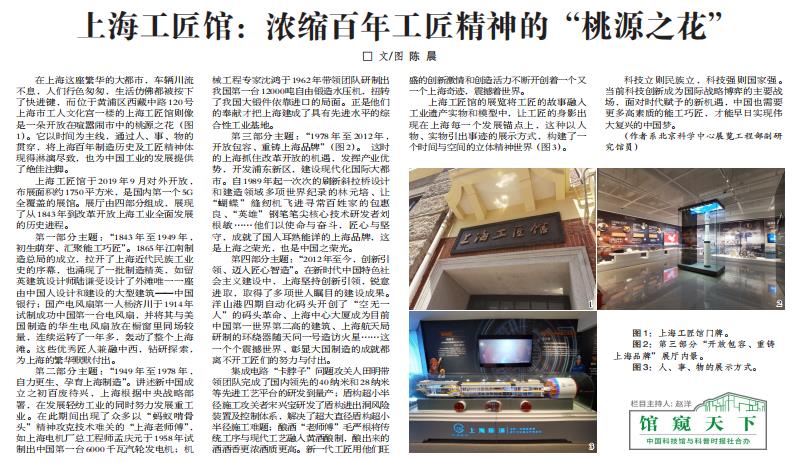 在上海这座繁华的大都市,车辆川流不息,人们行色匆匆,生活仿佛都被按下了快进键,而位于黄浦区西藏中路120号上海市工人文化宫1楼的上海工匠馆则像是一朵开放在喧嚣闹市中的桃源之花(图1)。它以时间为主线,通过人、事、物的贯穿,将上海百年制造历史及工匠精神体现得淋漓尽致,也为中国工业的发展提供了绝佳注脚。