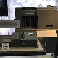 第二次世界大战期间,由于参战各国对计算的需求与日俱增,模拟计算器已无法满足要求,因此电子计算机技术快速发展。该馆第四展区入口摆放着一台ENIAC计算机,它可谓是电子计算机的鼻祖,重27吨,占据了10米乘15米的空间,使用了近20000个真空电子管,运算速度大幅提高。现在看来,虽然其计算能力只有智能手机的千万分之一,但具有划时代意义。由此开始,研发人员在存储、计算、分析、网络、小型化等方面不断发力,最终让计算机成为我们生活不可或缺的一部分。