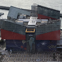 大阪海游馆是日本最为壮观的水族馆之一(图1),它以独特的展示方式再现了栖息在太平洋的620种、3万只动物活泼可爱的姿态。海游馆由近20个大水箱和特设区域错落分布而成,游客从最高处的“日本森林”水箱出发,围绕蓄水量达5400吨的“太平洋”水箱,沿着螺旋状坡道向下参观,从飞禽走兽栖息的陆地,潜到鱼群遨游的海洋,最后达到神秘的深海世界,通过视觉、听觉、嗅觉、触觉等多感官体验了解环太平洋地区动物的生活。