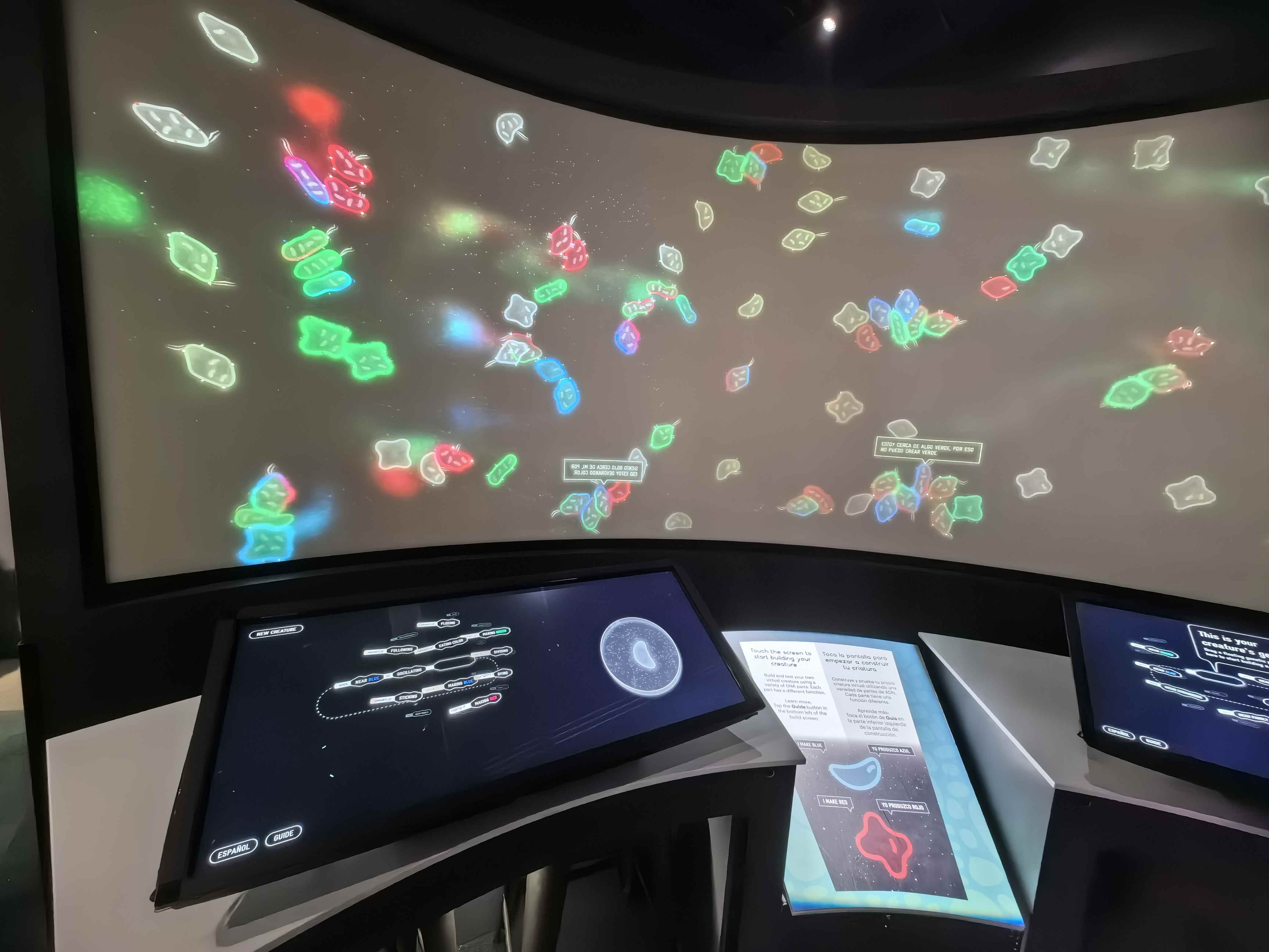 创新科技博物馆还非常重视教育活动,在展厅内设置了若干“实验室”“工作坊”之类的空间。为了让观众深入了解生物学学科,展厅设有“生活色彩实验室”。这是个虚拟实验室,观众可运用“科学家的工具”,通过控制色彩的量,指示DNA制造出红绿蓝色,从而创造独特的颜色。这样每天都会发现“新的细菌”,观众还可将自己的发现与社区其他科学家的发现进行比较。