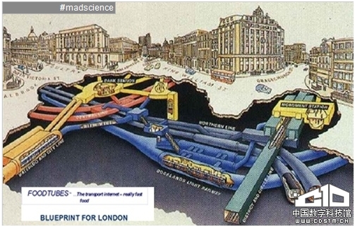 20世纪50年代的科幻小说中有这样的设想:存在着这样一个遍布全球的食物运输通道,在伦敦和利物浦之间以60公里的时速传送烤豆和熏鲑鱼。显然,这比我们目前的做法要合理得多。