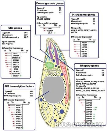 “我们想问的问题是:是什么原因导致毒性弓形虫和孢子寄生虫之间的差异?”来自维康信托基金会桑格研究所的第一作者Adam Reid 博士解释说:“我们才用了基因组测序法去探索它们之间的差异,这些差异可能源于它们传播的方式以及分化的方式。”