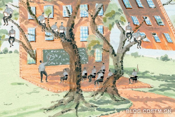伊利诺伊州的威顿学院(Wheaton College)的英语文学教授艾伦•雅格布斯(Alan Jacobs)有同样的顾虑。他在发给我的电子邮件中写道,大学生们在课堂上和他人的讨论以及对此做出的思考会极大地影响他们的学习状况。他说,这类对话之丰富,并不能在互联网论坛上获得完全的复制,“除非那些在线上打字的人具有娴熟的小说家的本领,用文字把复杂的思考类型和经历表现出来”。一个电脑屏幕将永远只是一个好的大学课堂的空洞影子。和伯克一样,雅格布斯担心MOOC反映出来的教育观点已经偏斜向那些研发这些平台的计算机科学家的观点。