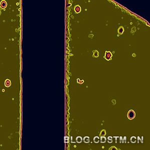 有用的缺陷:钻石上的缺陷结构在假色图中被呈现为黑色的圆点。钻石缺陷可作为磁场感应器使用,能探测到钻石表面小样本的微弱磁场。