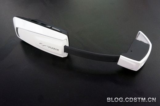 VUZIX的这款设备看起来就像一个免提耳机,一个额外的部分向前伸出――一根带状连杆将一个小棱镜固定在佩戴者的眼睛前方,并将光线由一个小屏幕导向佩戴者的眼睛。该连杆是可弯曲的,因此屏幕的位置很容易调整,因而在你想直接看着屏幕的时候,它相对不那么显眼。