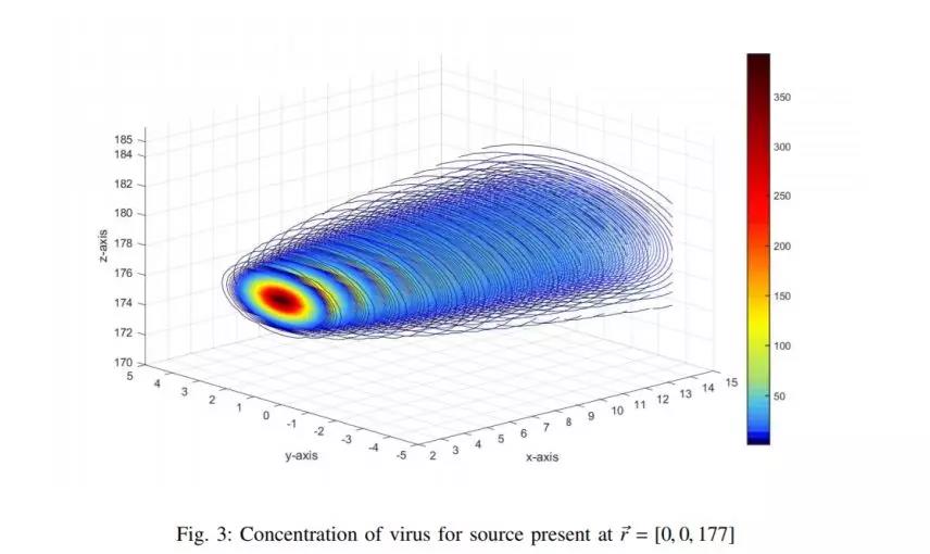 研究人员模拟了病人在正常呼吸时释放的病毒气溶胶。结果显示,随着气溶胶传播距离增加,病毒浓度也会不断下降。尽管模型没有展现出完整的线性关系,但这篇论文认为,只要离病源足够远,病毒浓度就会很快下降,这对于理解和预防气溶胶传播有很好的借鉴意义。而中日友好医院疾病预防控制处副处长郭丽萍在接受新华社采访时也表示,“虽然气溶胶传播比飞沫传播远,但病毒相对浓度较低,致病力会大减。”