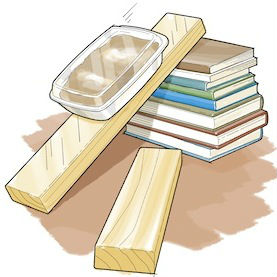 1.在有地毯的地方,用几本书和一块干木搭一个斜坡。确保木头靠在书堆的同一个位置。
