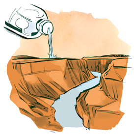 水会沿着山向下流动,经常会带走泥沙、岩石和许多其他的物质。这个过程被叫做侵蚀,一般发生在雨后,土壤被冲入溪流。经过数百万年水流的侵蚀,水流经的地方就会形成峡谷。巨大的科罗拉多大峡谷是由经过科罗拉多河几百万年的侵蚀而形成。
