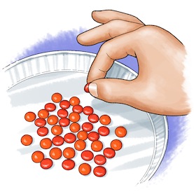 向你的 捕食者们讲解,他们需要假装成迫不及待要享用MM豆的鸟。让他们用拇指和食指摆出一个“鸟嘴”来捡MM豆。他们有二十秒的时间来选择糖果,并放在自己的另一只里。为了鼓励志愿者快速运作,告诉他们完成实验后,可以吃掉手中的糖果。不过他们必须在实验结束后才能吃。
