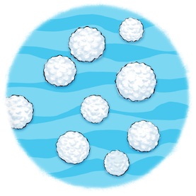 胶体溶液(也被称作胶态悬浮液)含有直径从1到1,000纳米不等的小颗粒。(一纳米非常小——人的一根头发大约有100,000纳米宽!)在这个活动中,使用的颗粒是玉米淀粉,它们在一定量的水中均匀分散。这些颗粒非常小,小到你用肉眼无法看到它们——而且当你看胶体溶液时,它看起来是均匀的,或者说是一致的。然而,如果你把它放在显微镜下,它看起来就不均匀了,或者说就像是东西混合在了一起。
