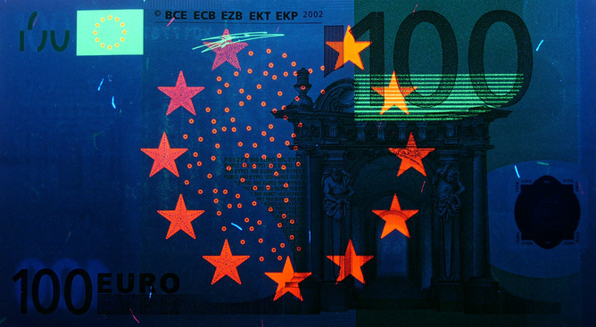 紫外光下的100欧元纸币 European Central Bank, CC BY
