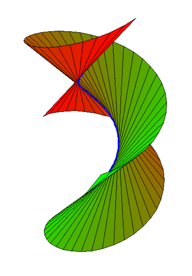 事实证明, 尽管柱面或锥面看上去是弯曲的, 它内蕴上是平坦的。在本科微分几何课程中(比如我在Monash上的一门课), 当我们研究这个内蕴曲率就会发现有许多平坦的曲面。
