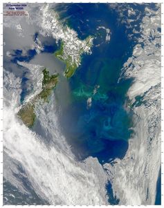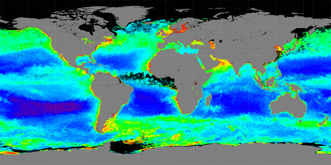 从太空观察到的南大洋里的叶绿素。(图片来源:NASA)