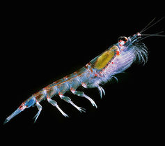 像南极磷虾这样的浮游动物以浮游植物为生。(图片来源:krill666, CC BY-SA)