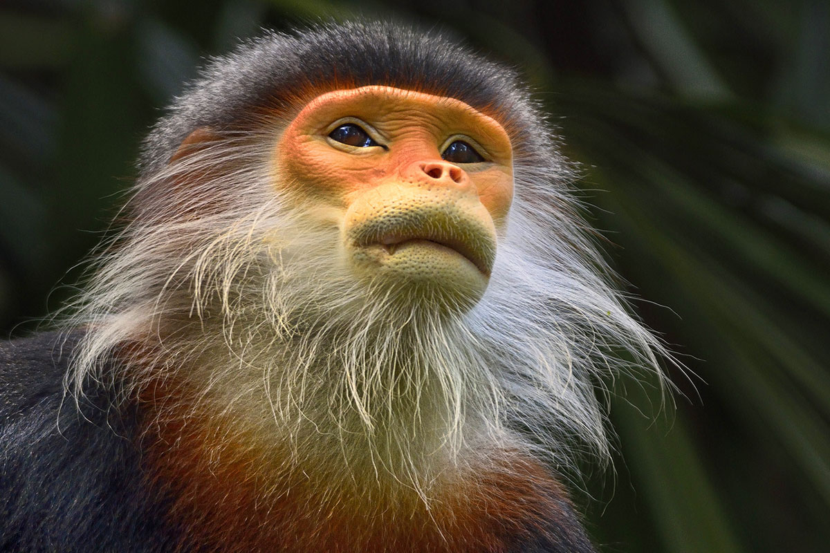 在越南、泰国和邻近地区有分布的白臀叶猴的长相完全是孔夫子的形象。白臀叶猴是非洲分布的疣猴(Colobus sp.)的亲戚,它们非常沉着,当不在树枝上闲逛的时候,就摆出佛祖一样的姿势,并炫耀自己突出的、填满了树叶的肚子,还有纤细的、白色的胡子。雌雄两性都有胡子,但雄性胡子更多一些。胡子可能是为了在茂密的山地森林植物中定位族群中的其他成员。
