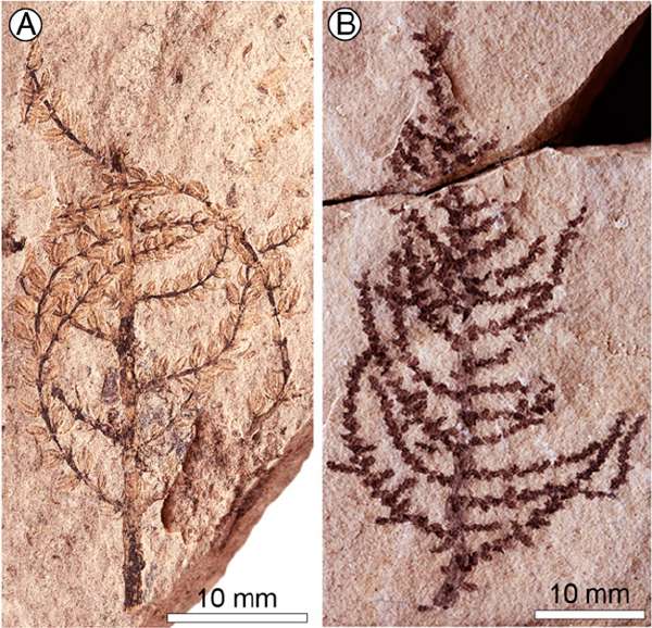 这种植物完全没有根系(在1000个化石样本中都没有发现),而且出于某种原因,这种植物在化石中呈现两种不同的形态,正如上图和下图A,B中所示。