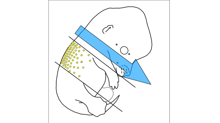 细胞从胚胎背面附近开始向正面迁移。图片来源:Richard Mort