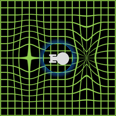 Alcubierre的曲速引擎对空间的作用也是一样的。Alcubierre说通过恰当地物质分布,你可以将飞船前的空间压缩,将其后的空间拉伸,并且制造一个气泡包裹任意速度的飞船。因为空间在飞船前收缩,飞船实际上并没有超过光速。而且,飞船相对于气泡是静止的,在气泡里的人不会感到加速度。这是一次平稳的旅途。