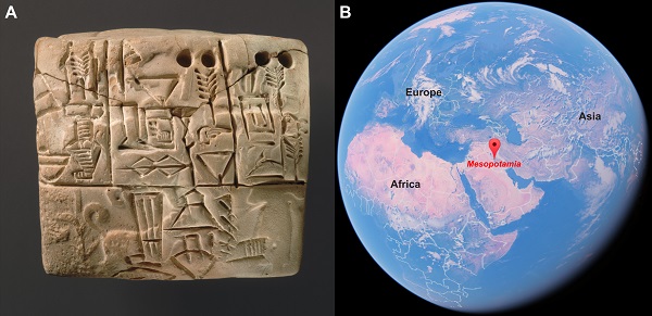 图2-B 在谷歌地图中显示的美索不达米亚地区的位置,也就是现今的伊拉克地区。
