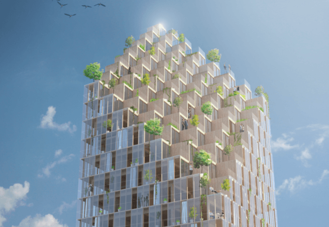 为斯德哥尔摩设计的34层木结构高楼(图片来源: Berg | C.F. m?ller Architects)