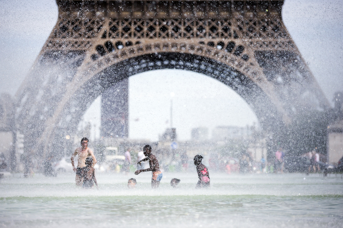 巴黎遭遇近六十年来最高温,纳凉正当时。图片来源:Etienne Laurent / EPA