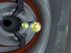 即将发生碰撞的钙离子和镅原子示意图。图片来源: Lawrence Livermore 国家实验室