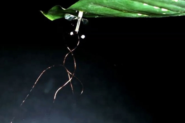 这种具有“电粘性”(electroadhesive)的微型飞行器通过在其头部和表面之间产生静电引力悬挂在木面、玻璃和树叶下方。研究人员在周四发表在《科学》(Science)的一篇论文中表明,维持静电引力的能量比支持微型飞行器飞行同样时间的能量少三个数量级。这篇论文的合著者,麻省理工学院的机械工程博士生Moritz Alexander Graule说:“飞行器越小,电量不足的问题就越严重。”
