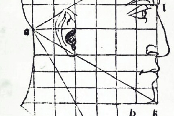 Luca Pacioli于1509年出版的《神圣比例》一书中描述的人头部的比例。图片来源:维基共享资源