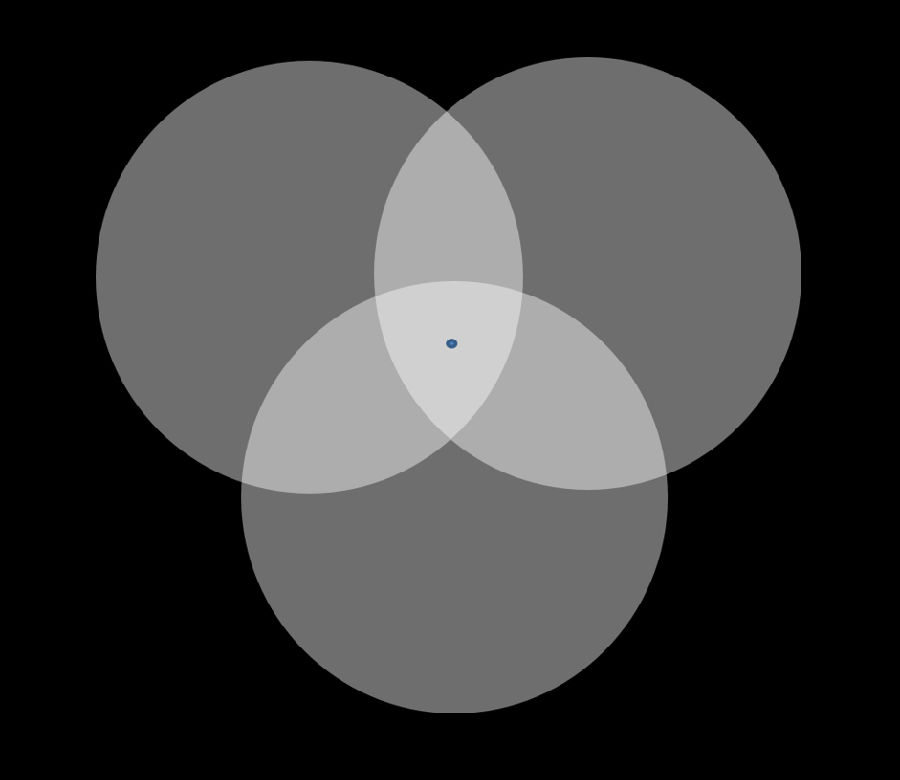 观察这张图片,我们发现这三个半透明的圆圈具有同样的亮度。现在,盯着三个圆圈交叉处中间的圆点。在盯着中间圆点的同时,将你的注意力转移到其中一个圆圈上。你选择关注的那个圆圈会变亮,而且似乎还会位于其他两个圆圈的前面。现在换一个圆圈重复这个过程,你会发现你选择关注的任何一个圆圈都会比其他两个未被关注的显得更加突出显著。