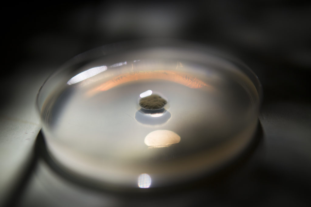 NASA喷气推进实验室里,被送往国际空间站的切尔诺贝利真菌在皮氏培养皿中生长
