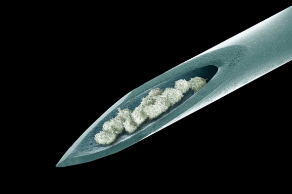 ——科学家们发现缬氨酸对造血干细胞发育的重要作用 复合彩色扫描电子显微摄影:针内的骨髓细胞(概念艺术作品)。图片来源:STEVEGSCHMEISSNER Getty Images