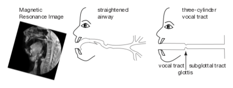 对于一个物理学家来说,这显然是更加难懂的,声道就像是一个圆柱体一样。这是一个共振系统,在声带处关闭(或者说几乎是关闭的),在嘴巴处敞开。