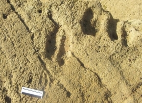 历经长达9年对南非开普海岸的研究,古生物学家Charles Helm和他的同事们发现了超过一百份的化石遗迹。这些镶嵌在更新世沙丘中的痕迹为十万年前生活在那片区域的生物的足迹,其中包括今天为我们所熟知的一些动物。在Still Bay东部的一个研究点,一些痕迹记录了一只冰河时代长颈鹿的活动。